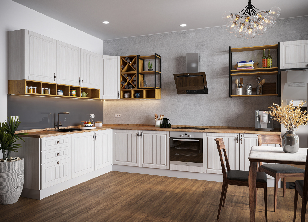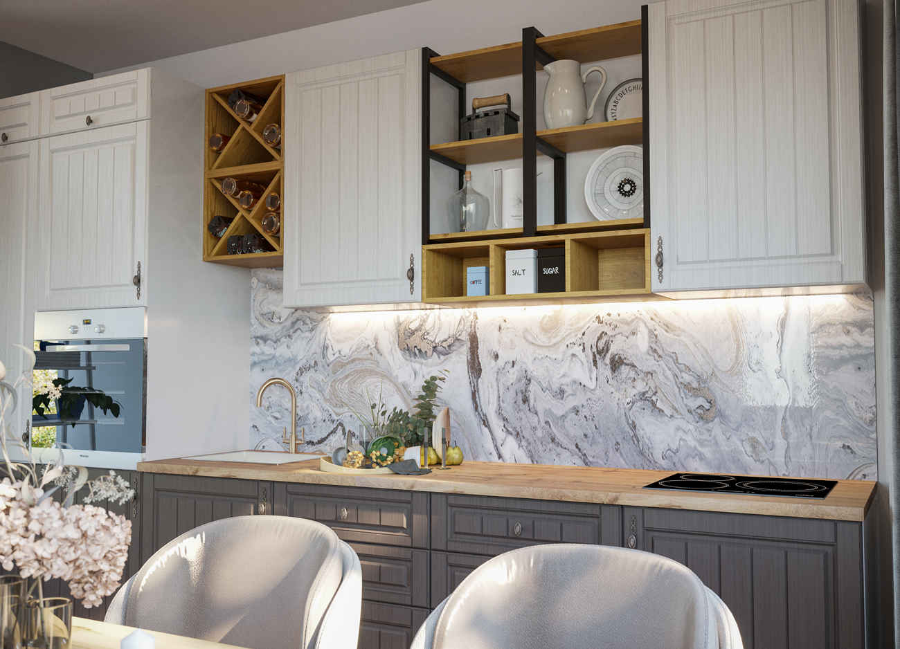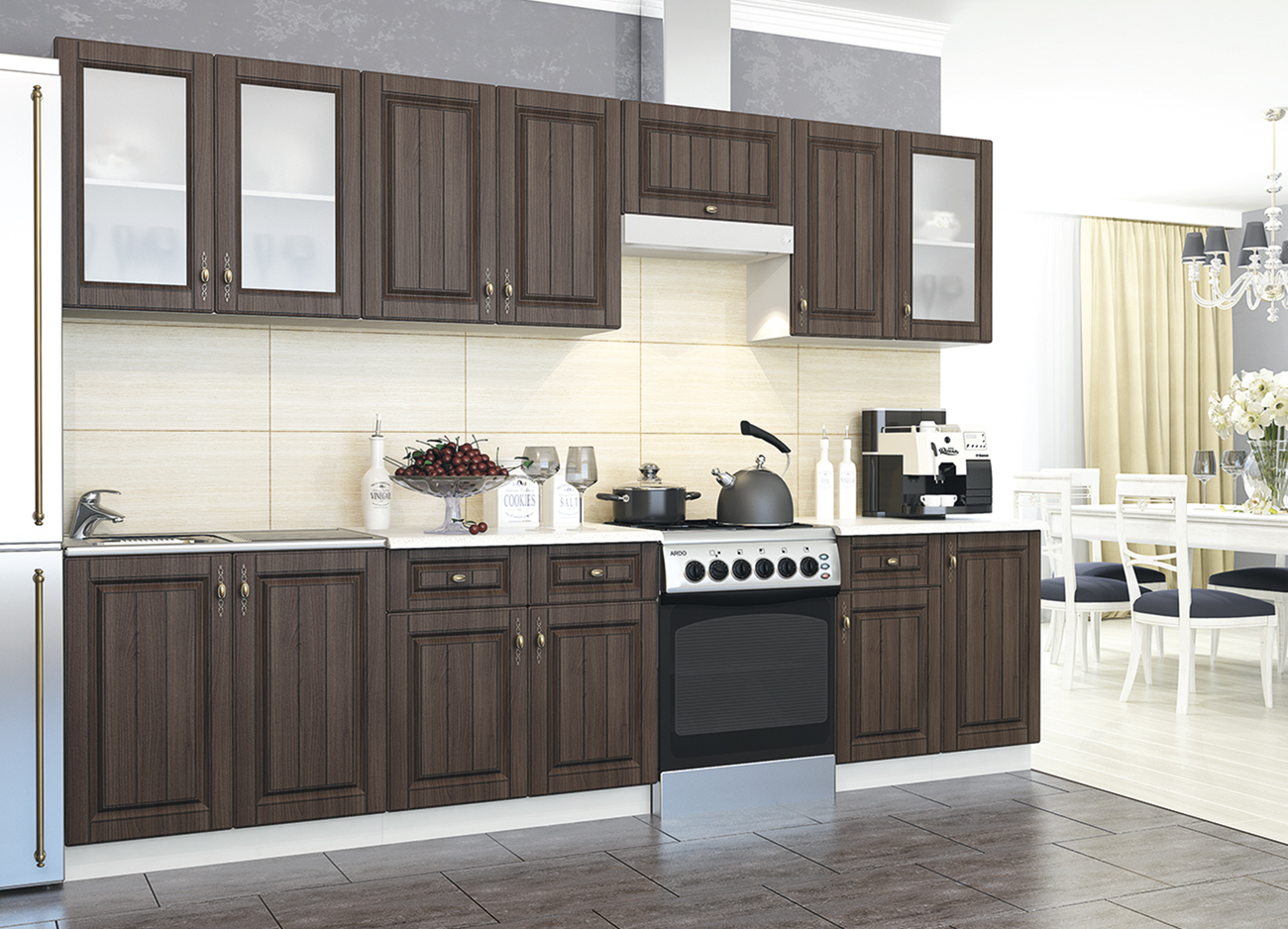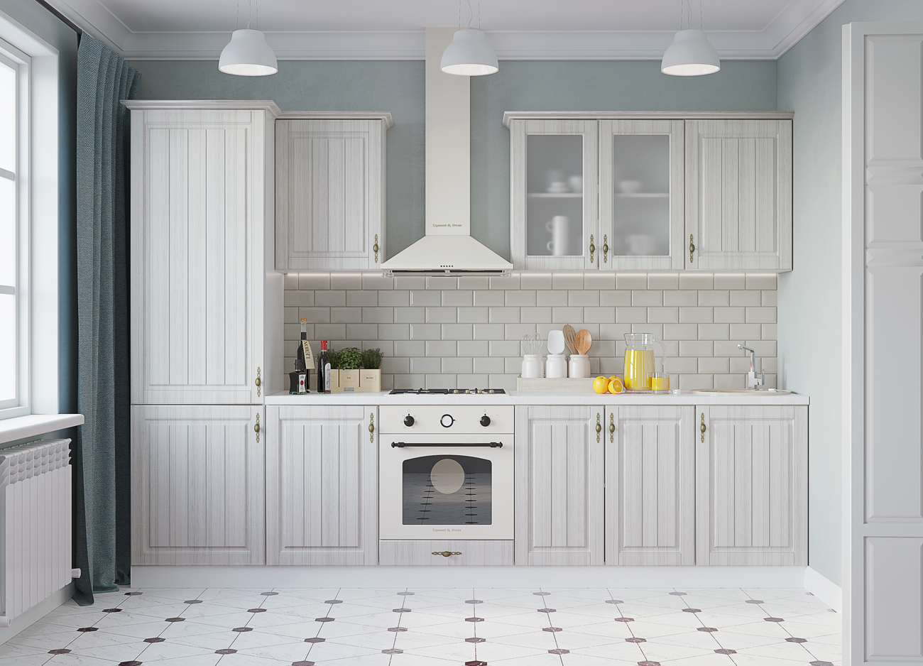 Внимание: Мойка, столешница, стеновая панель и комплектующие в стоимость кухни не входят и приобретаются отдельно.