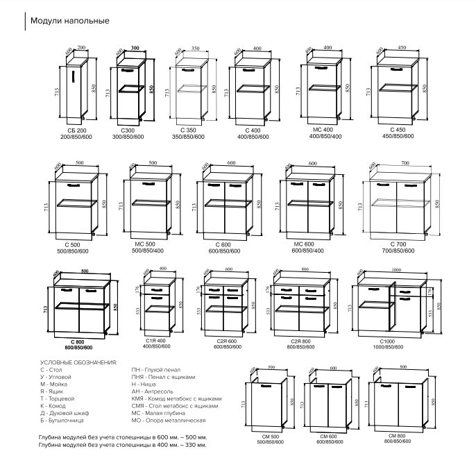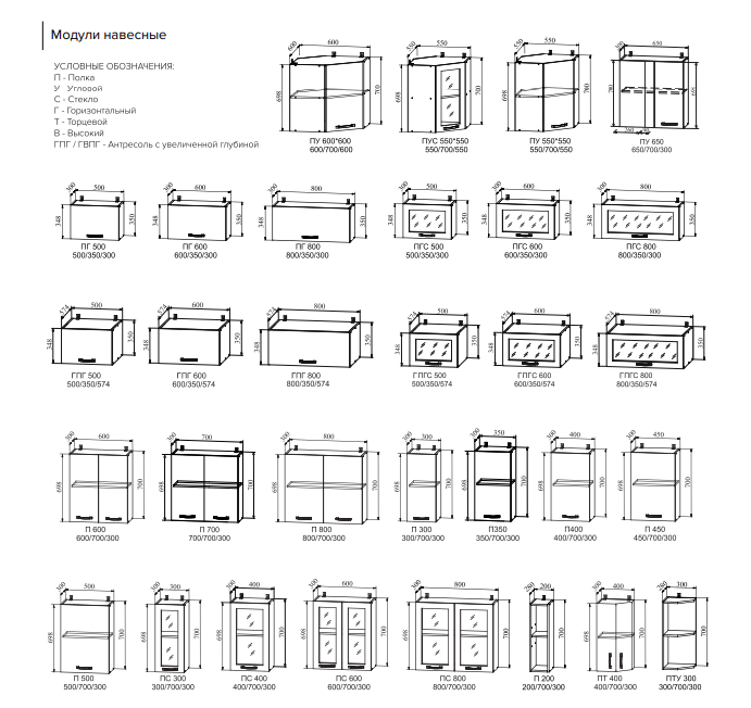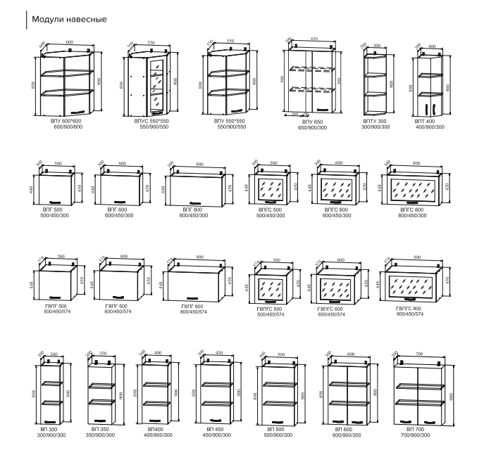Цена указана за кухонный гарнитур длиной 2000 мм включает следующие модули: